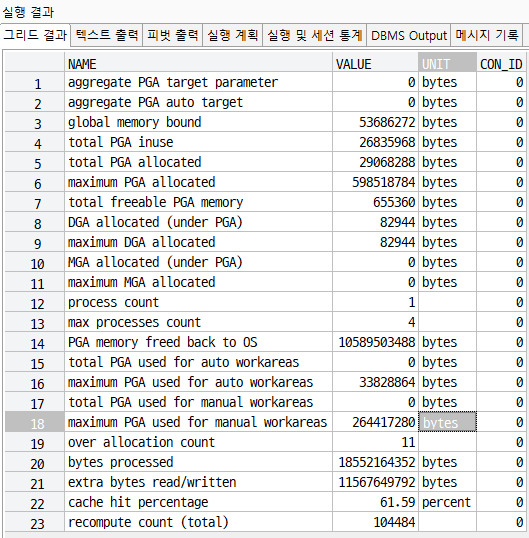 aggregate PGA target parameter: 기본값은 SGA 크기의 20% 입니다.